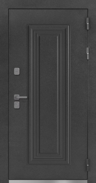 Отделка: декоративный элемент на лицевом листе полотна двери, выполненный методом давления. Металлические наличники шириной 100 мм.